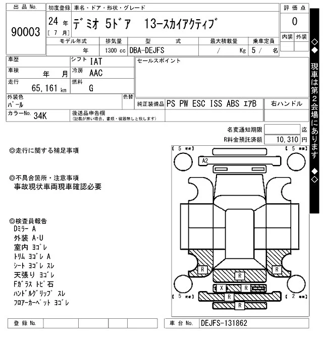Mazda DEMIO с аукциона Японии ARAI Bayside лот № 90003