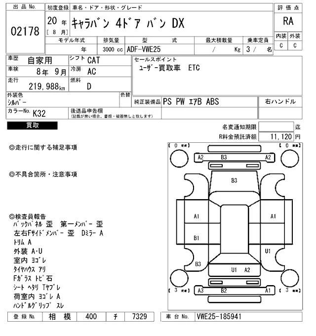 Nissan CARAVAN VAN с аукциона Японии ARAI Bayside лот № 2178