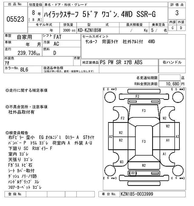 Toyota HILUX SURF с аукциона Японии ARAI Bayside лот № 5523