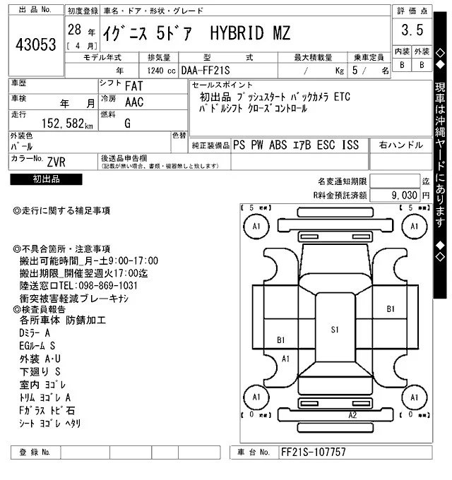 Suzuki IGNIS с аукциона Японии ARAI Bayside лот № 43053