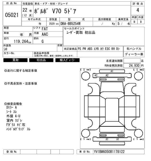 Volvo V70 с аукциона Японии ARAI Bayside лот № 5021