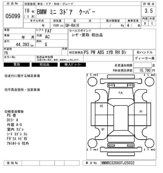 BMW MINI с аукциона Японии ARAI Bayside лот № 5099