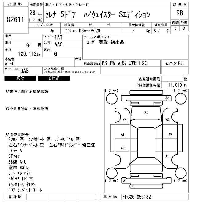 Nissan SERENA с аукциона Японии ARAI Bayside лот № 2611