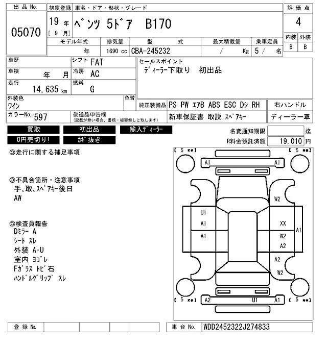 Mercedes-Benz B CLASS с аукциона Японии ARAI Bayside лот № 5070