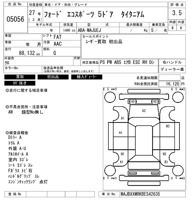 Ford ECOSPORT с аукциона Японии ARAI Bayside лот № 5056