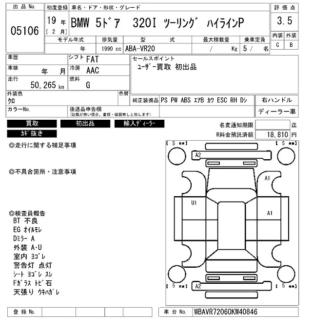 BMW 3-Series с аукциона Японии ARAI Bayside лот № 5106