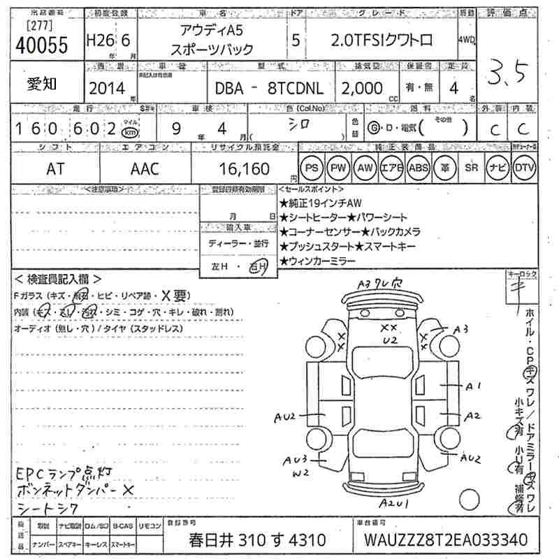 Audi A5 с аукциона Японии MIRIVE Aichi лот № 40055