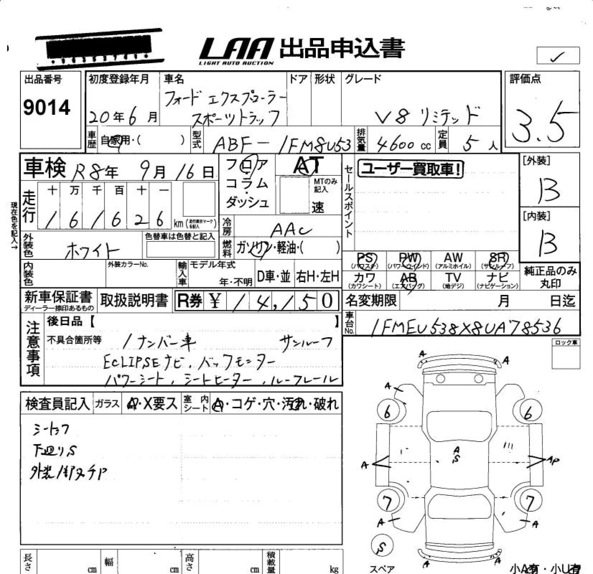 Ford EXPLORER с аукциона Японии LAA Okayama лот № 9014
