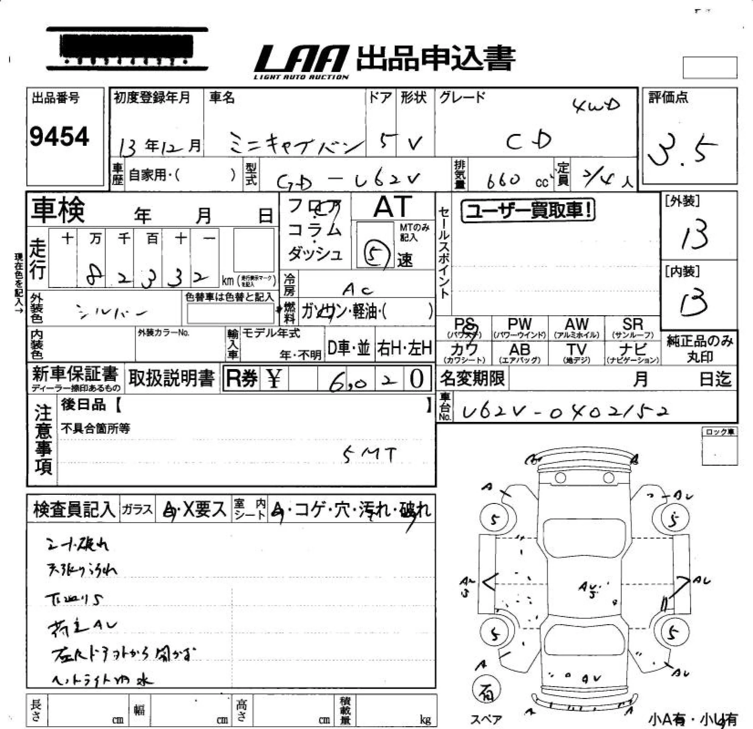 Mitsubishi MINICAB VAN с аукциона Японии LAA Okayama лот № 9454