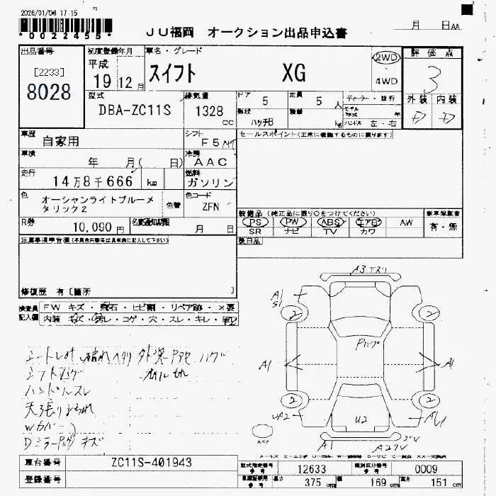 Suzuki SWIFT с аукциона Японии JU Fukuoka лот № 8028