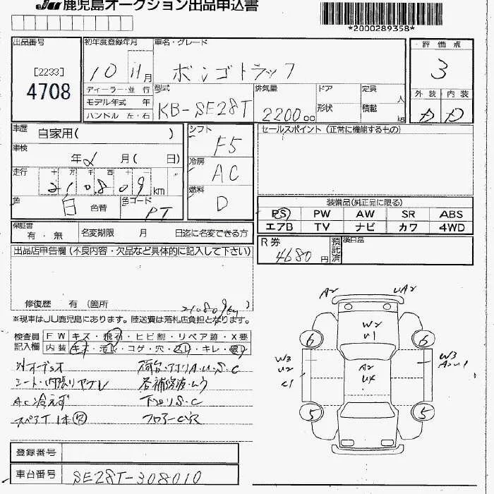 Mazda BONGO с аукциона Японии JU Fukuoka лот № 4708