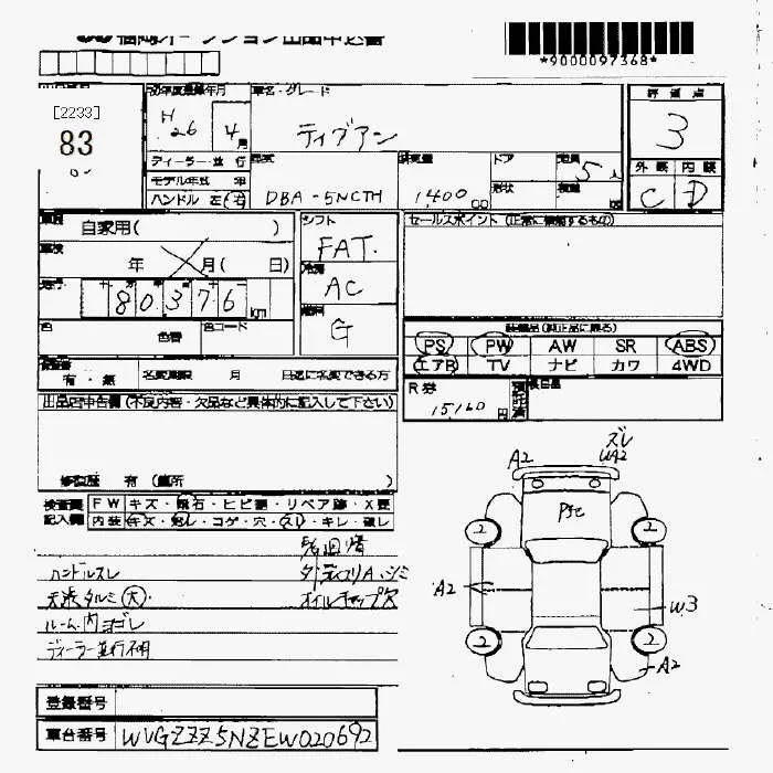 Volkswagen TIGUAN с аукциона Японии JU Fukuoka лот № 83