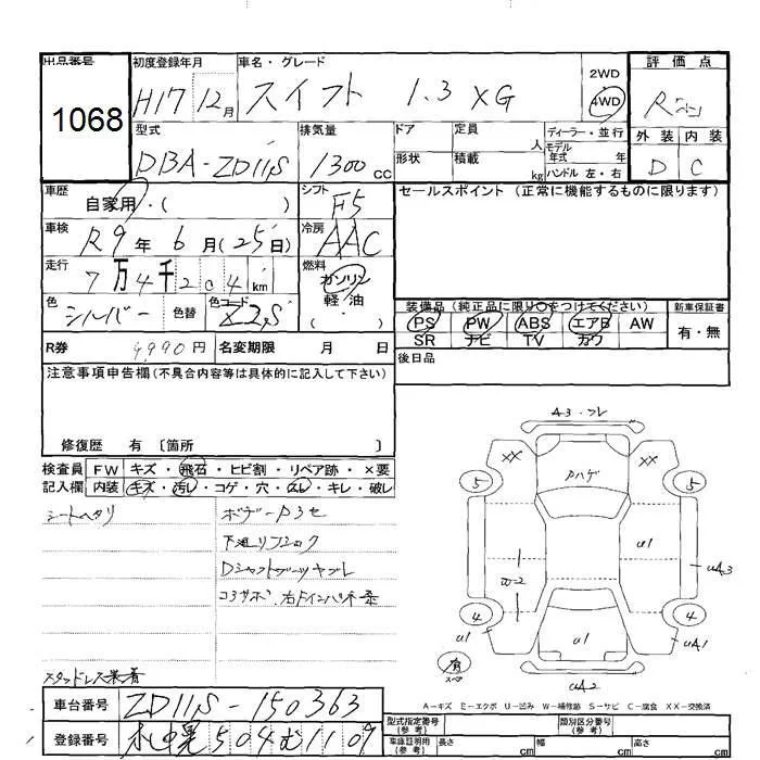 Suzuki SWIFT с аукциона Японии JU Hokkaido лот № 1068