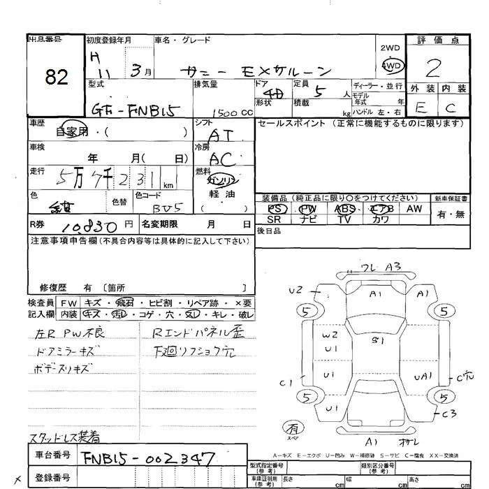 Nissan SUNNY с аукциона Японии JU Hokkaido лот № 82