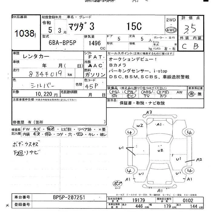Mazda MAZDA3 с аукциона Японии JU Hokkaido лот № 1038