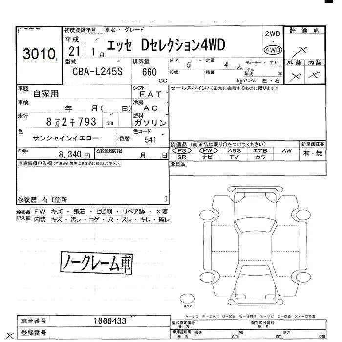 Daihatsu Esse с аукциона Японии JU Hokkaido лот № 3010