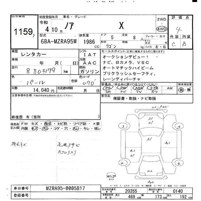 Toyota NOAH с аукциона Японии JU Hokkaido лот № 1159