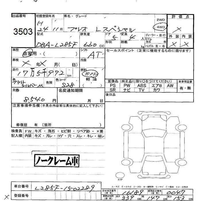 Subaru PLEO с аукциона Японии JU Hokkaido лот № 3503