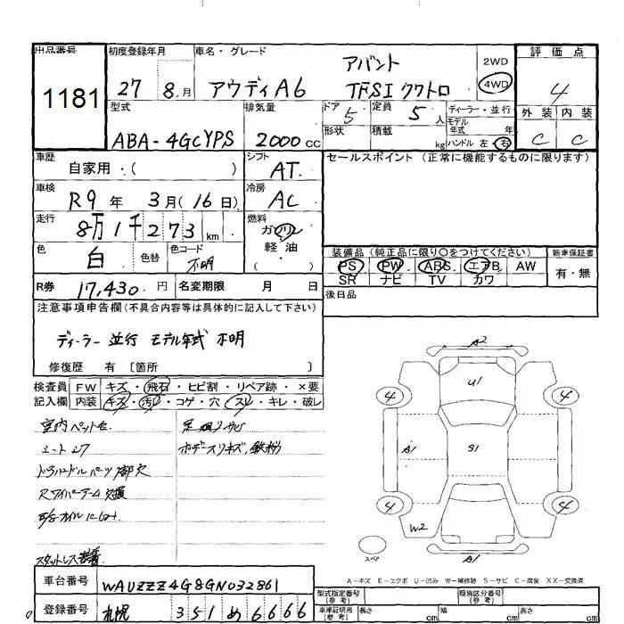 Audi A6 с аукциона Японии JU Hokkaido лот № 1181