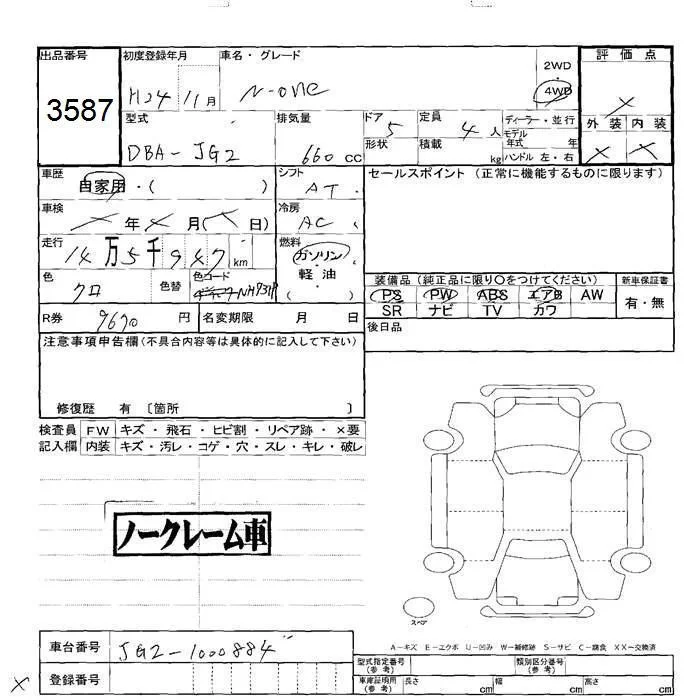 Honda N ONE с аукциона Японии JU Hokkaido лот № 3587