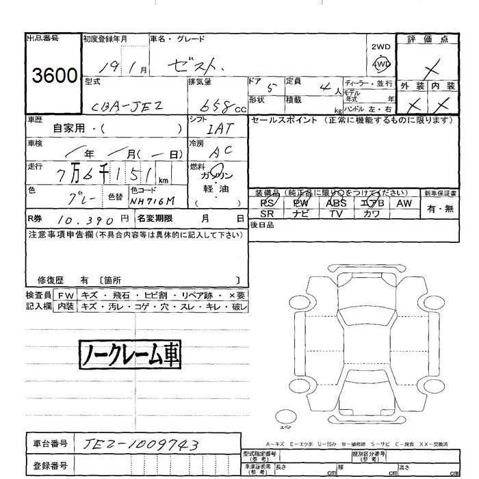 Honda ZEST с аукциона Японии JU Hokkaido лот № 3600