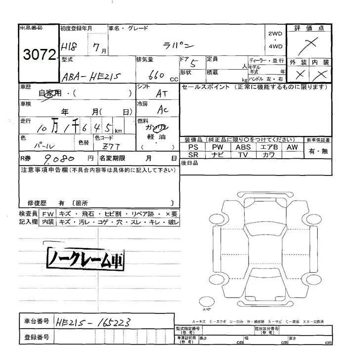 Suzuki ALTO LAPIN с аукциона Японии JU Hokkaido лот № 3072