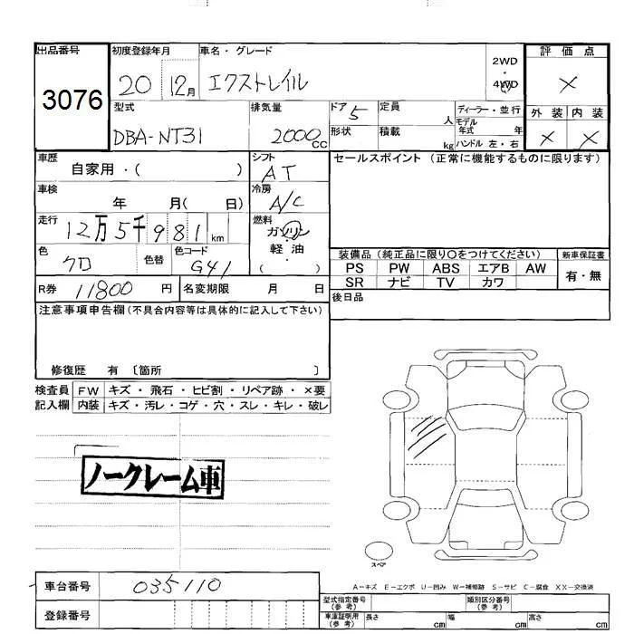 Nissan X-TRAIL с аукциона Японии JU Hokkaido лот № 3076