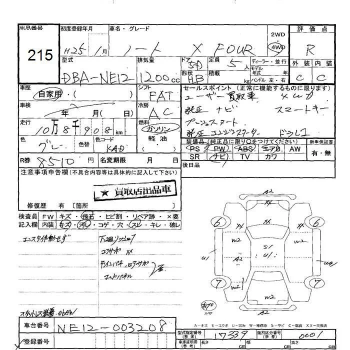 Nissan NOTE с аукциона Японии JU Hokkaido лот № 215