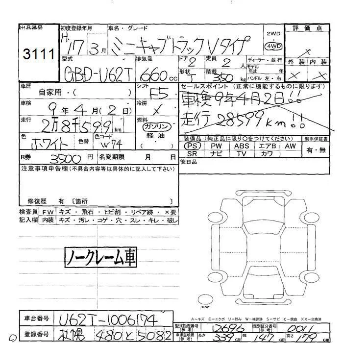 Mitsubishi MINICAB TRUCK с аукциона Японии JU Hokkaido лот № 3111