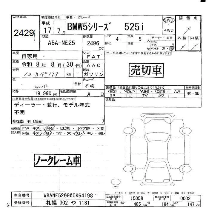 BMW 5-Series с аукциона Японии JU Hokkaido лот № 2429