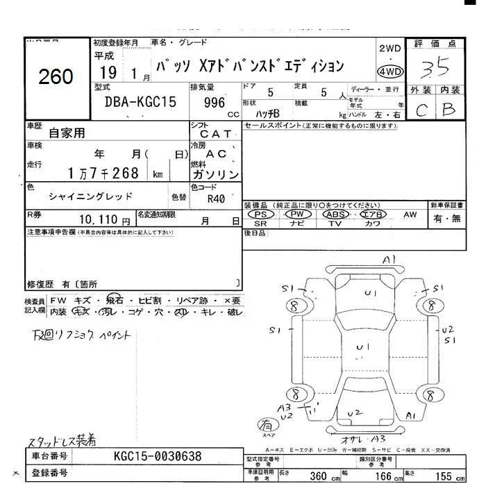 Toyota PASSO с аукциона Японии JU Hokkaido лот № 260
