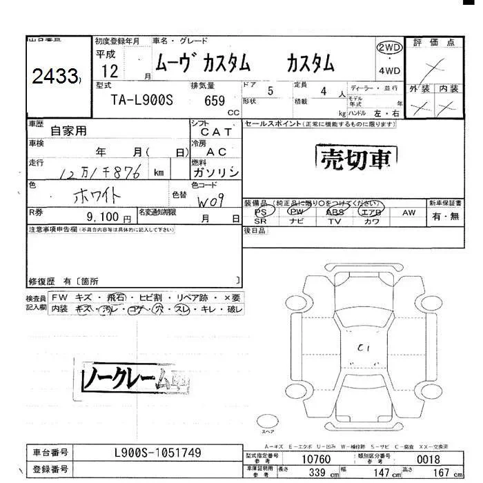 Daihatsu MOVE с аукциона Японии JU Hokkaido лот № 2433