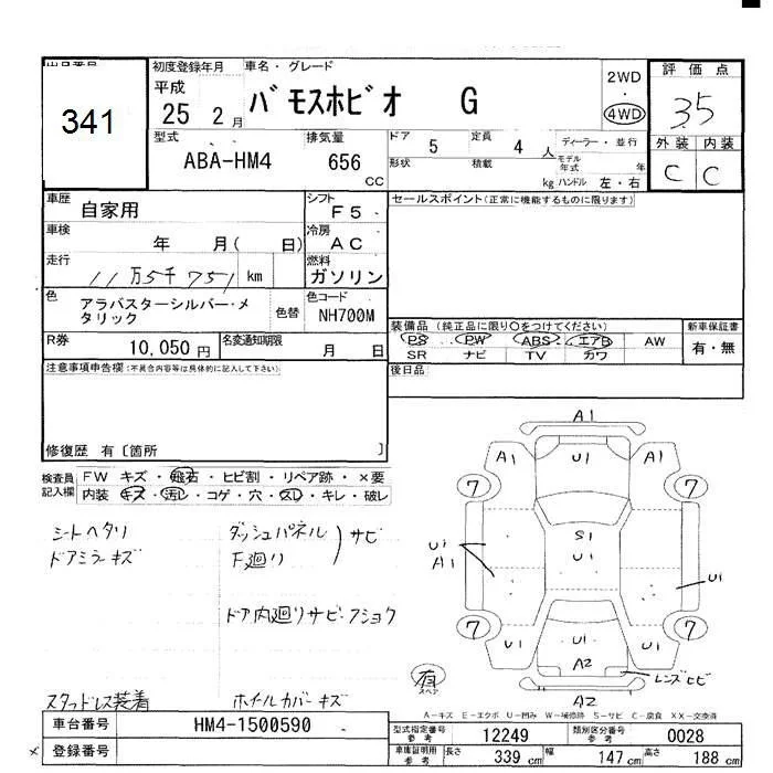 Honda VAMOS с аукциона Японии JU Hokkaido лот № 341