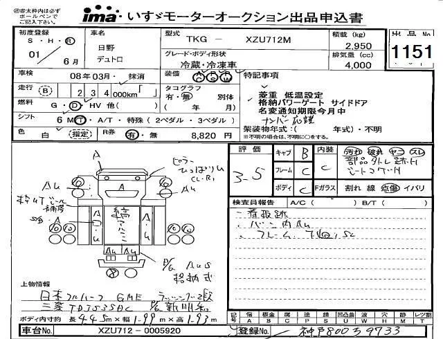 Hino DUTRO с аукциона Японии Isuzu Kobe лот № 1151