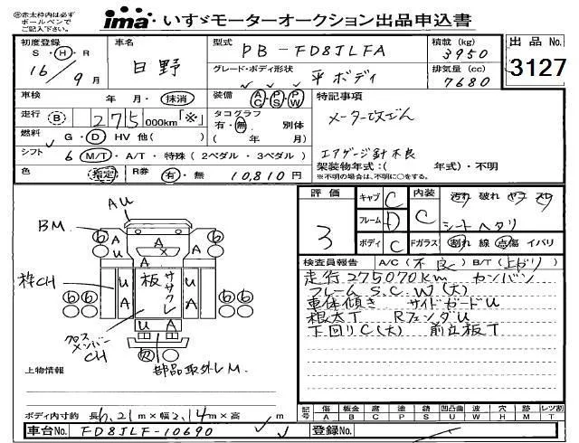 Hino RANGER с аукциона Японии Isuzu Kobe лот № 3127