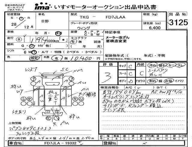 Hino RANGER с аукциона Японии Isuzu Kobe лот № 3125