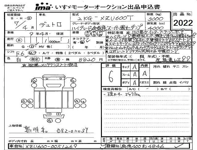 Hino DUTRO с аукциона Японии Isuzu Kobe лот № 2022