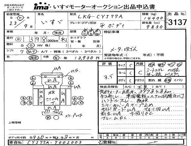 Isuzu TRUCK с аукциона Японии Isuzu Kobe лот № 3137