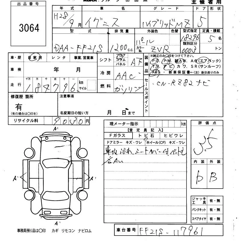 Suzuki IGNIS с аукциона Японии KCAA Yamaguchi лот № 3064