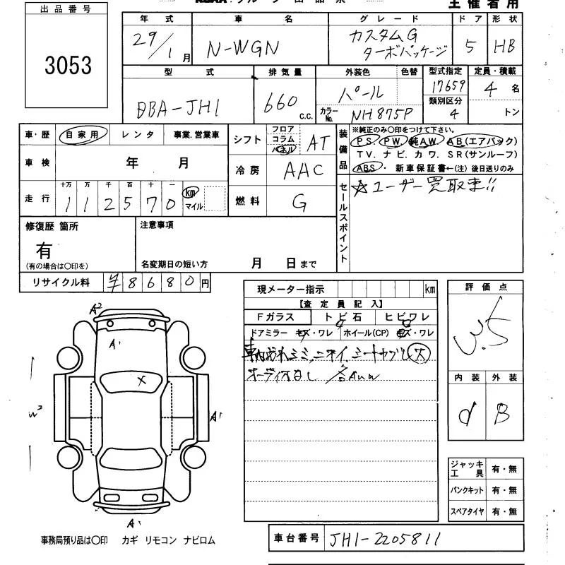 Honda N WGN с аукциона Японии KCAA Yamaguchi лот № 3053