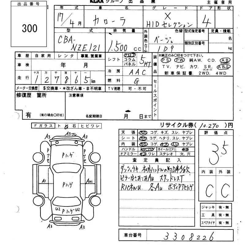 Toyota COROLLA с аукциона Японии KCAA Yamaguchi лот № 300