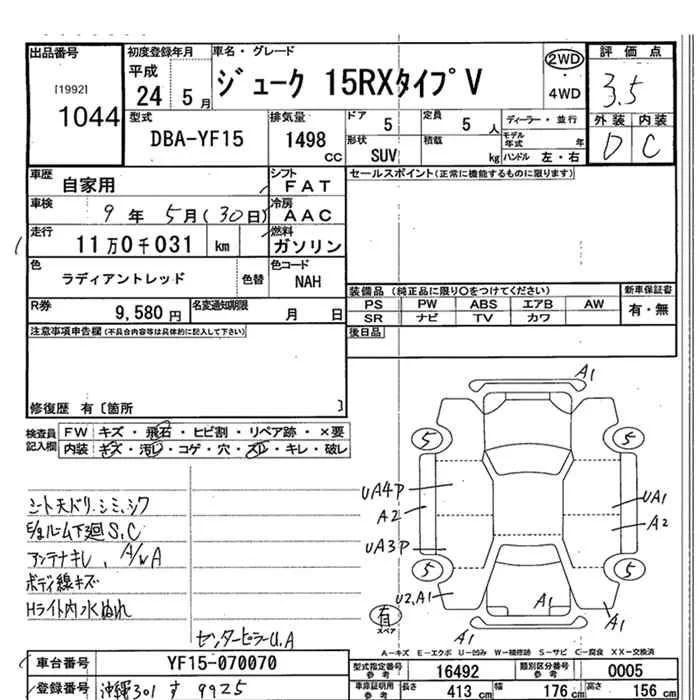 Nissan JUKE с аукциона Японии JU Okinawa лот № 1044