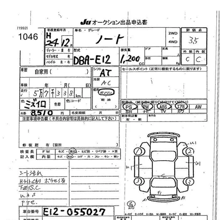 Nissan NOTE с аукциона Японии JU Okinawa лот № 1046
