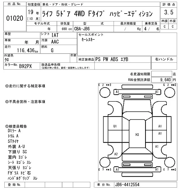 Honda LIFE с аукциона Японии ARAI Sendai лот № 1020