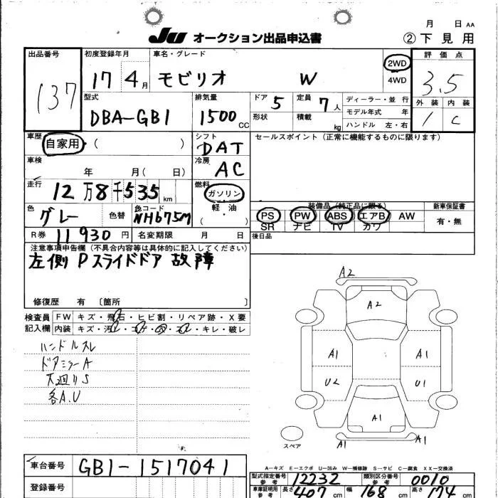 Honda MOBILIO с аукциона Японии JU Shimane лот № 137
