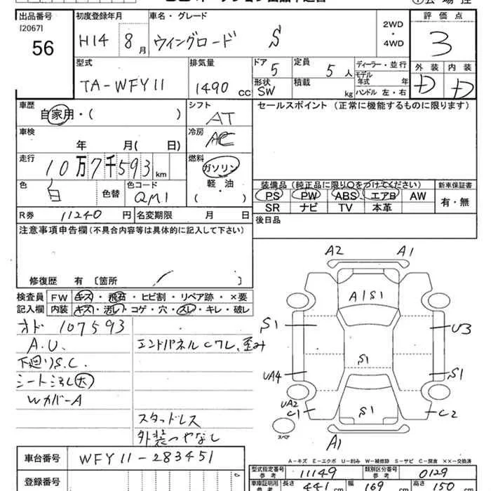 Nissan WINGROAD с аукциона Японии JU Niigata лот № 56