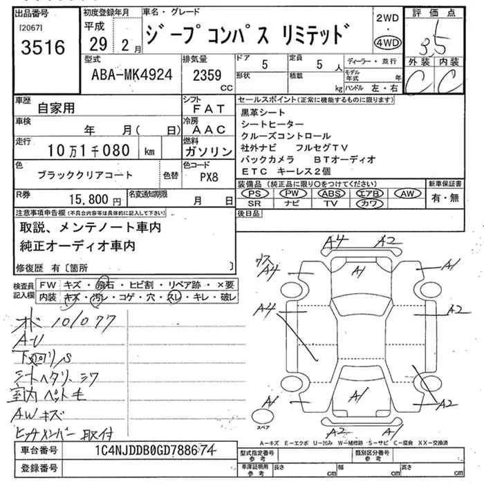 Chrysler JEEP COMPASS с аукциона Японии JU Niigata лот № 3516