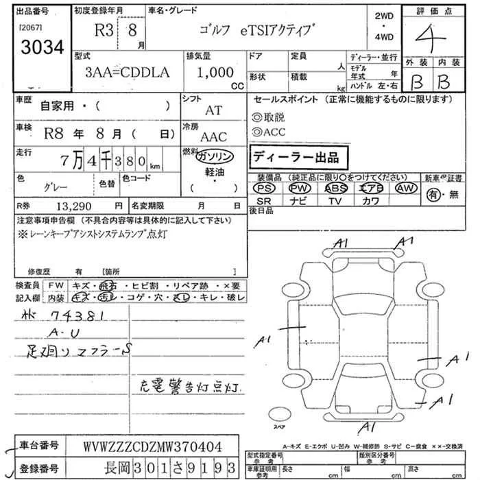 Volkswagen GOLF с аукциона Японии JU Niigata лот № 3034