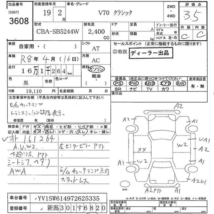 Volvo V70 с аукциона Японии JU Niigata лот № 3608