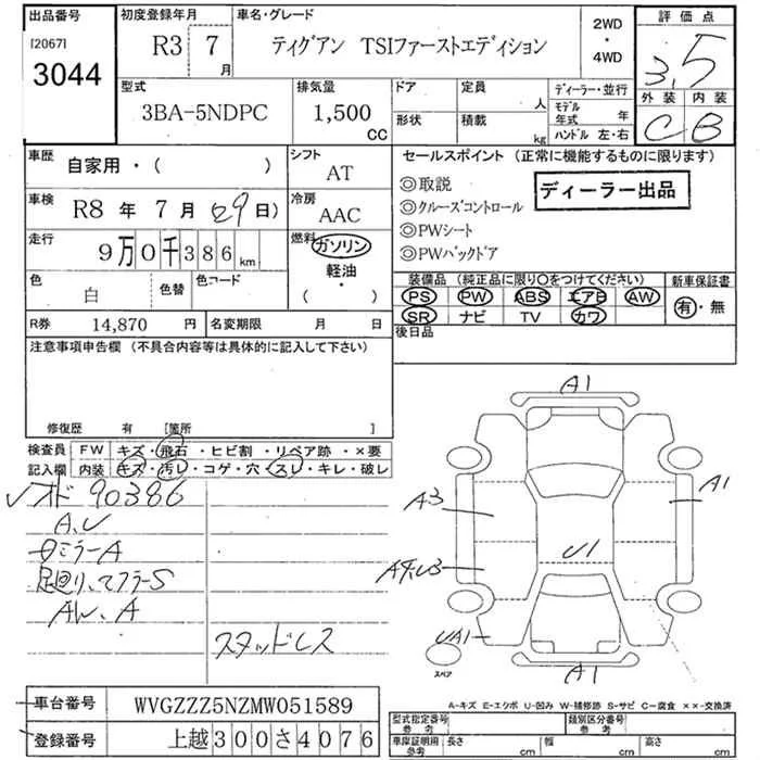 Volkswagen TIGUAN с аукциона Японии JU Niigata лот № 3044
